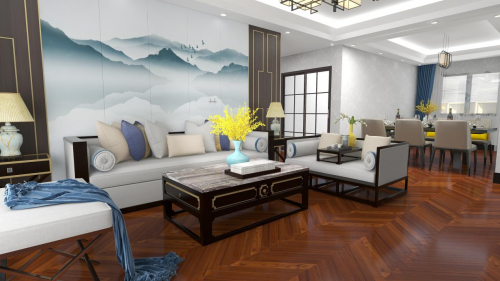 林昌柚木實木地板T9188,以經典大方的金黃色作為主色調,色澤典雅,光澤感強烈,極富裝飾效果;優美的墨線、斑斕的油影,在木面構成了獨特的天然紋理,整體鋪裝后顯得格外高貴美麗,尊貴和典雅質感立由足下生起。