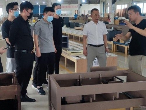 游學(xué)第一站,西安設(shè)計(jì)師團(tuán)隊(duì)一行首先參觀了LORBN勞賓?高明生產(chǎn)基地。高明生產(chǎn)基地是集“綠色、智能、精益”為一體的現(xiàn)代化智能工廠,擁有行業(yè)先進(jìn)的生產(chǎn)設(shè)備、綠色的自動(dòng)化生產(chǎn)線和嚴(yán)格的質(zhì)量檢測標(biāo)準(zhǔn)。設(shè)計(jì)團(tuán)隊(duì)在LORBN董事長李睿等領(lǐng)導(dǎo)人員的帶領(lǐng)下,近距離感受了浴室柜的生產(chǎn)原理及工藝設(shè)備。