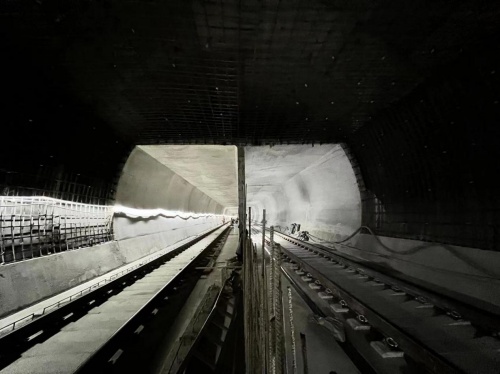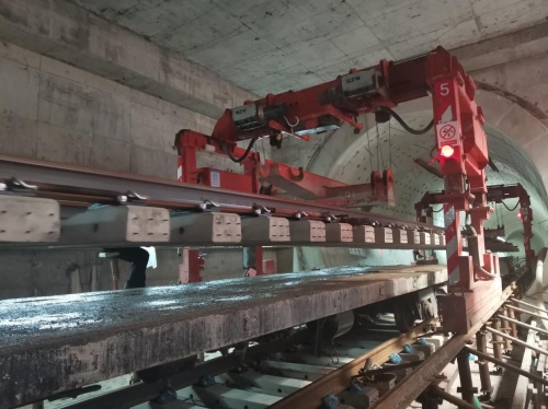 5月19日,在大連地鐵五號(hào)線正線海底大盾構(gòu)段火車站站-梭魚灣南站區(qū)間,由中國(guó)中鐵一局員工操作的新能源鋪軌機(jī)將最后一節(jié)鋼軌鋪設(shè)完畢,標(biāo)志著世界首例海域巖溶地層大直徑盾構(gòu)隧道大連地鐵五號(hào)線海底隧道鋪軌雙線貫通,為全線軌道貫通奠定了堅(jiān)實(shí)的基礎(chǔ)。