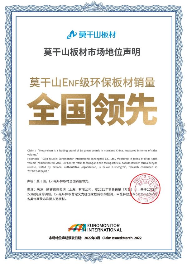 2020年,莫干山板材與紅星美凱龍簽署戰略合作協議,對于未來工程渠道業務拓展有著重要意義。2021年,基于在工程建設領域的突出貢獻和標桿項目成果,莫干山板材榮獲了“中國板材國家品牌”、“2020年度十大工程板材品牌”與“2020年度板材優秀制造企業”三大獎項。今年3月,莫干山無醛添加人造板榮獲了“2022房地產開發企業綜合實力Top500首選供應商”認證。