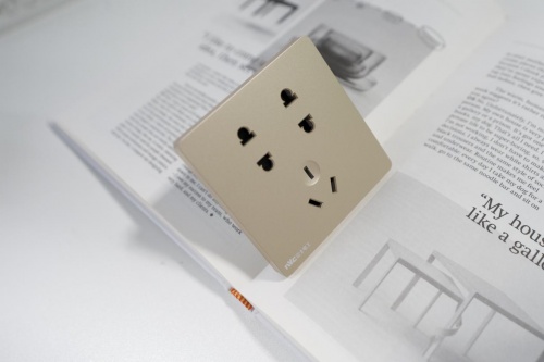 以N20香檳金斜五孔插座為例,它經過NVC雷士電工實驗室的千萬次拔插測試,產品能夠做到5000次拔插不松動,安全可靠,防止電火花產生,并且內置連鎖結構擋片,插孔無法單獨插入,也可以有效避免兒童老人誤操作引發觸電危險。