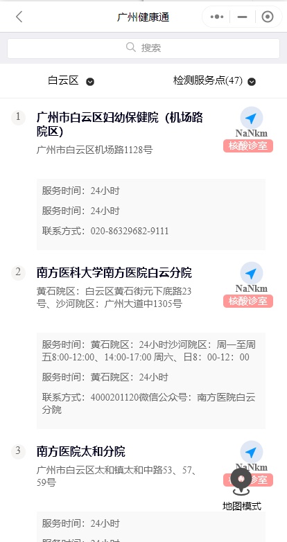 那么,對于廣州的市民,要怎樣才能更直接、方便地知道家附近有哪些免費的核酸采樣點?可在微信搜索“廣州健康通”小程序,在首頁點擊“核酸檢測采樣機構”,即可查看距離最近的核酸檢測點!