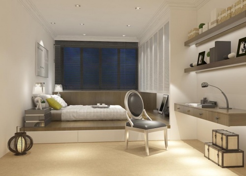 說起小臥室,就不得不談榻榻米。榻榻米固然省空間,卻缺少傳統臥室床的美感,很多人也因此對它不感冒。
