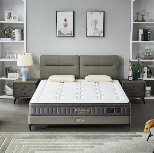 這款東寶軟床采用直立式床屏設計,床屏寬度與床體齊平,從而節省臥室空間。軟床四四方方的外觀結構顯得簡潔大方。