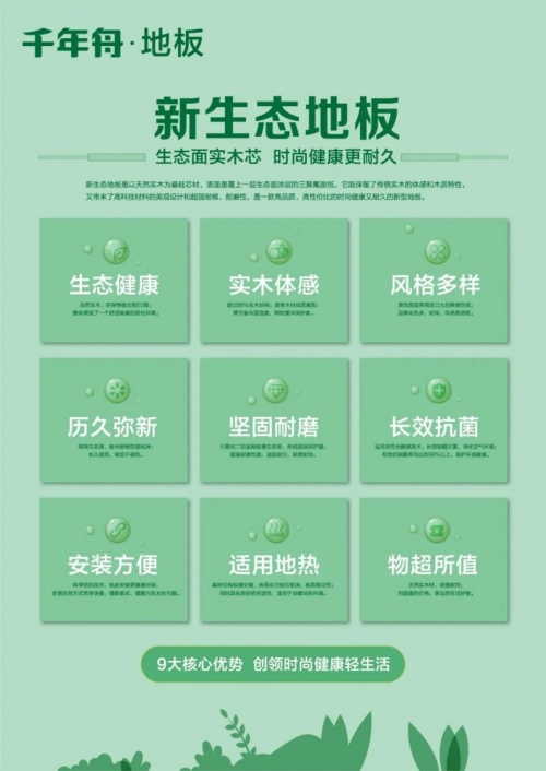 早在2002年黨的十七大報(bào)告中就明確提出了實(shí)現(xiàn)全面建設(shè)小康社會奮斗目標(biāo)的新要求,其中,“建設(shè)生態(tài)文明,基本形成節(jié)約能源資源和保護(hù)生態(tài)環(huán)境的產(chǎn)業(yè)結(jié)構(gòu)、增長方式、消費(fèi)模式”,更是重中之重。千年舟深耕板材產(chǎn)品研發(fā)23年,基于板材行業(yè)及90后新興消費(fèi)市場的變化,根據(jù)23年的生態(tài)板材生產(chǎn)技術(shù)于經(jīng)驗(yàn),2022年首次將生態(tài)技術(shù)應(yīng)用于地板,“新生態(tài)地板”正式誕生:這是一款致力于打造兼具實(shí)木體感和生態(tài)技術(shù)特性的時(shí)尚健康又耐用的新品類地板,服務(wù)于新時(shí)代年輕人生態(tài)家居環(huán)境的生活需要,它又是怎樣當(dāng)之無愧的呢?