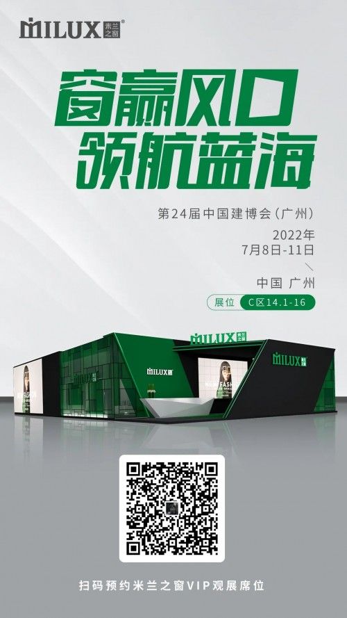作為中國系統(tǒng)門窗行業(yè)的領(lǐng)軍品牌,米蘭之窗不斷引領(lǐng)中國門窗新風(fēng)尚,此次展會不僅是米蘭之窗對產(chǎn)品工藝創(chuàng)新展示,更是在獨具影響力的行業(yè)舞臺彰顯品牌綜合實力的亮劍之行。2022年品牌首秀即將拉開序幕,行業(yè)盛世紛呈,7月8日-11日,中國進(jìn)出口商品交易會展館(廣交會展館)C區(qū)14.1-16展位,米蘭之窗整裝待發(fā),勢必領(lǐng)潮中國建博會,如約相”建“,聚享未來。