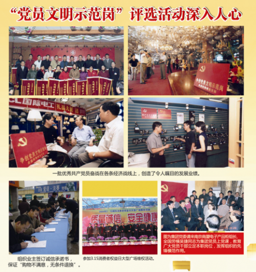 強(qiáng)化政治引領(lǐng),凝聚共識和諧發(fā)展。從1999年集團(tuán)開始評比“黨員示范”商戶并為他們授牌,此項(xiàng)工作已成為金盛集團(tuán)黨建品牌之一對積極要求加入黨組織的商戶進(jìn)行培養(yǎng)考察,已有10多名商戶在集團(tuán)黨委的關(guān)心培養(yǎng)下光榮地加入了黨組織。