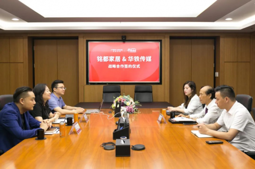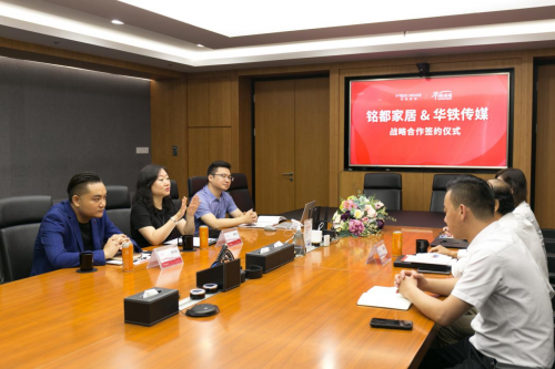 銘都家居有限公司副總經理鄭祖榮、華鐵傳媒集團有限公司北京第十二事業部銷售副總經理李雅文等領導嘉賓出席簽約儀式,共同就雙方行業發展、品牌建設與合作事宜進行真誠且深入的交流。會上,雙方領導簽署戰略合作協議,全面開啟銘都家居品牌宣傳戰略,帶來品牌聲量和銷量的雙重爆發!