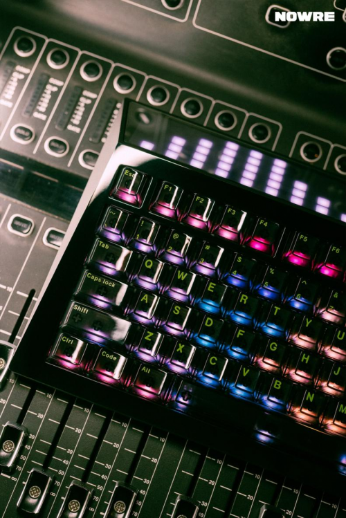 成品套裝鍵帽,則搭配了 RGB 燈光效果極為炫酷的【冰川黑透鍵帽】。