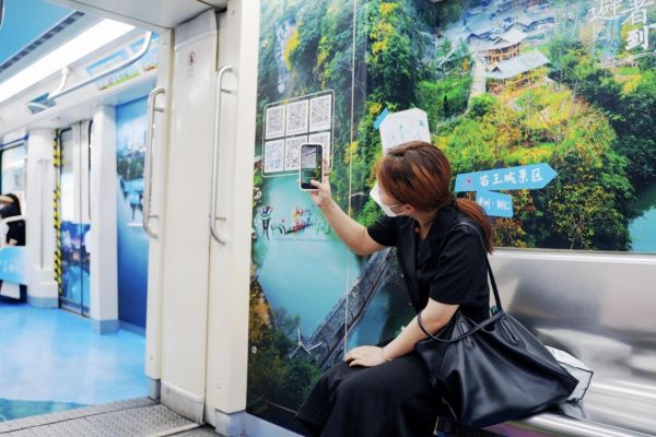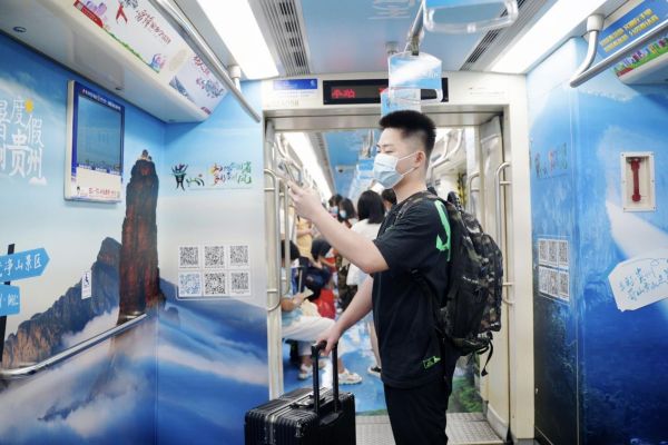 此次旅游地鐵專列的設計契合省文化和旅游廳夏季避暑主題,凸顯貴州夏日之美,將貴州的奇山秀水、民族風情、民俗文化、民宿、古鎮(zhèn)、漂流、美食、露營基地等旅游元素逐一為游客展示,讓游客感受撲面而來的貴州魅力,助力文旅宣傳。