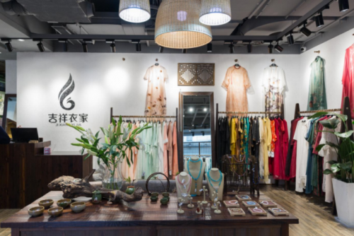 “吉祥衣家”定位輕奢,品牌的目標客戶是自信成熟、審美觀偏重悅己>悅人的知性女性,設計風格相對內斂,面料也只選用真絲、棉麻與羊絨,工藝也相當考究,市場定價千元。