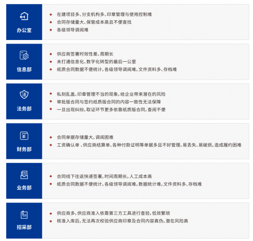 建筑企業(yè)各部門面臨的合同痛點(diǎn)(摘自《白皮書》)