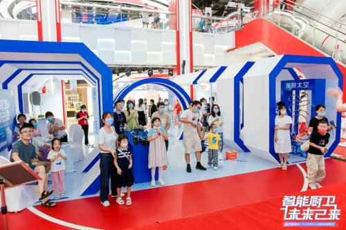 限產除了體驗智能廚衛家居產品外,豐富有趣的互動與精彩的舞臺節目也吸引了大量來到現場的消費者的注目。趣味十足的漫游太空,讓每一位參與者都感受到太空穿越的緊張與刺激;而太空涂鴉則深受小朋友的喜愛,小朋友們用畫筆描繪出他們想象中的太空和宇宙航行;不止是現場的互動,舞臺上舞者動感的舞蹈展現出未來前衛的一面,而鍛煉“臂力”的手機搖一搖,則在歡聲笑語中收獲了在場所有觀眾的參與熱情。