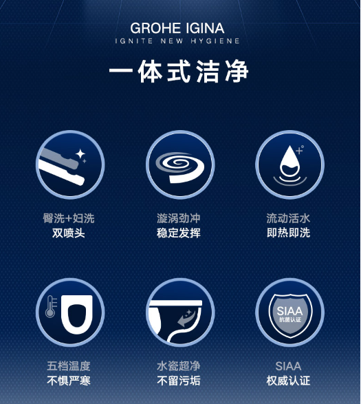 這款馬桶搭載高儀勁沖技術,強勁的沖洗水流會形成雙漩,對整個馬桶內部進行沖洗,搭配馬桶內部的水瓷超凈技術和順滑內壁,讓污漬無處藏身。除了看得見的污漬,高儀艾吉娜智能馬桶的銀離子抑菌表面技術,還可有效抑制細菌滋生,通過SIAA認證的抗菌座圈,抗菌率更是達到99.9%以上。