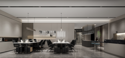 以極具包容和神秘感的深灰色為主調,深灰色鋁塑板結合千年舟獨特的綠色色系作為點綴。賦予空間時尚與前衛。