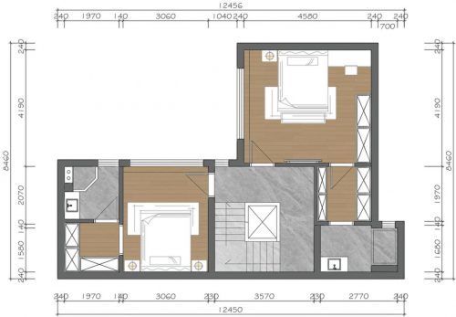 自帶庭院的一樓,被規劃成了休閑與公共區域,帶餐廚與大客廳的設計,從功能與視覺上提升了一樓空間的整體調性。二樓更注重私密性的空間設定,將主臥、次臥與衣帽間、衛生間進行規劃,滿足日常生活的功能設想,搭配喜盈門整裝定制的風格打造,完美詮釋復式公寓的精致與優雅。