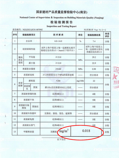 早在2018年,千年舟就成功研發生產出天然豆香板,板材甲醛釋放量≤0.018mg/m3,也就是說,這個數據優于新國標ENF級(≤0.025mg/m3)!