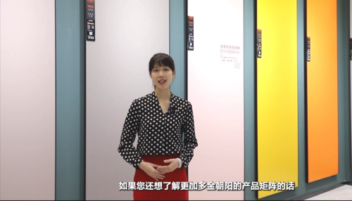 產品是第一營銷力。為了讓直播間的觀眾更直觀地感受金朝陽產品魅力,由金朝陽小程子帶領大家進行沉浸式云逛展廳,詳細講解了750*1500mm春韻系列、巖板900*1800mm系列以及純色巖板800*2600mm銳麗系列等產品,讓大家更詳細、深刻地了解金朝陽產品設計理念及品質。