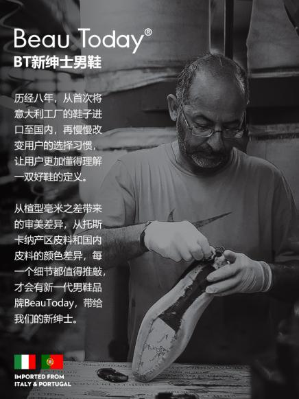 也許每個男士的心中都有一段紳士情結,它與身份地位、財富權勢無關,而是由內而外漫溢,表現在面對紛繁世事之時的翩翩風度、彬彬有禮,就像愛爾蘭作家George Bernard Shaw描述的紳士一樣“對世界的給與總是多于索取”。如果還沒有找到如何演繹它的方式,那就讓新一代男鞋品牌BeauToday引領著男士們啟程于足下,在細微之處洞見新時代紳士的生活格調和品位!