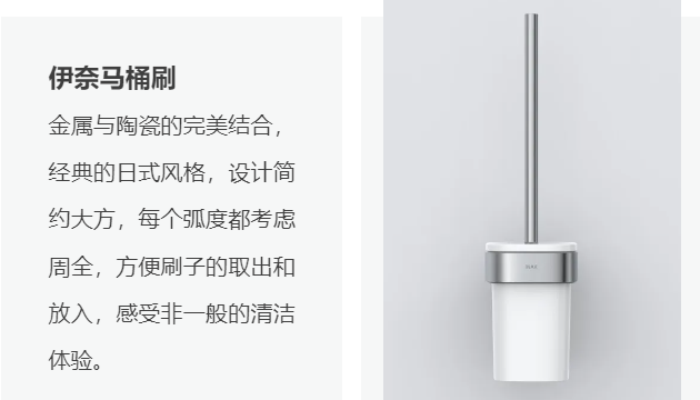 作為僅有一海之隔的鄰國,日本在產品設計上對于精神寓意與傳統文化的融合一直為人所稱道。而作為一家進口衛浴品牌,INAX伊奈是經由日本獨特的傳統和文化培育出來的品牌,傳承了其優良工藝和工匠精神。INAX伊奈打造的S600系列浴室套間,是平衡日本傳統設計和現代時尚觸覺的臻美結合。