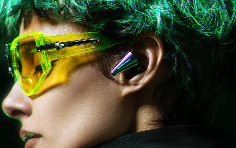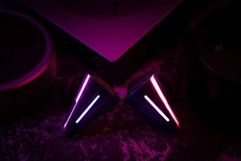 不僅如此,CYBERBLADE耳機機身側面還設計了大面積流光 RGB 燈效。在三角形的穩定與凌厲中取得微妙平衡,同時以燈效作為工業設計的一部分,讓 CYBERBLADE 成為 TWS 品類中最奪目的存在。