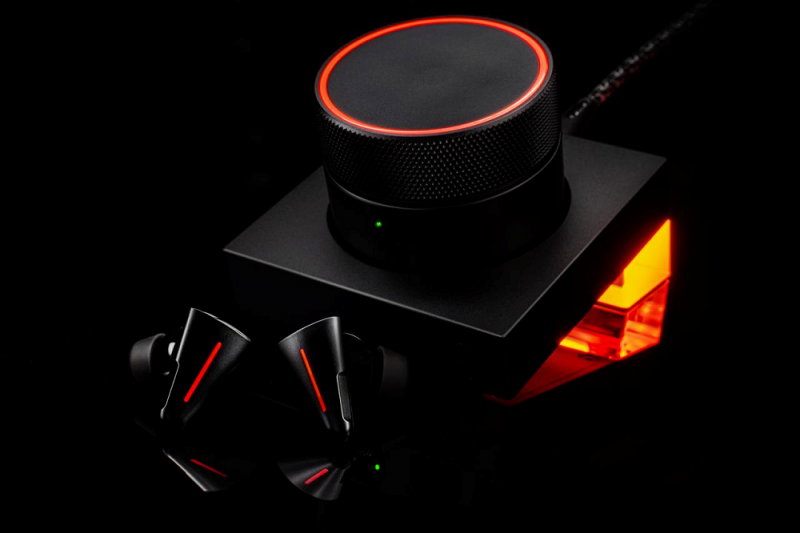 此外,CYBERBLADE 還擁有一系列非常人性化的交互設計,在有線連接的狀態下,怒喵在CYBERBLADE 充電盒上的盒蓋加入了旋鈕與壓感設計,可以非常便捷的實現音量大小調整,開閉麥,場景增強器切換等功能。同時還能在游戲主機/手機/電腦等多個設備之間無縫切換,將多設備兼容體驗做到極致。