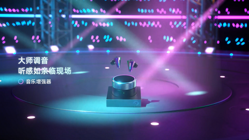 除了三芯片直接帶來音質增強,怒喵還希望 CYBERBLADE 能夠成為 TWS 個性化音頻的先驅,在音頻場景增強方向進一步發力,加入了針對游戲、影音與音樂等不同場景的多種 Booster 場景增強器算法,玩家可以根據其使用場景,通過充電盒按鈕,快速將 CYBERBLADE 切換至更加合適的場景。