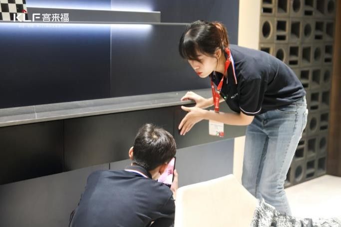 展會期間現場客商親身體驗了客來福·革物產品的精妙絕倫,對于無法來到現場的家人們,可以通過抖音線上客來福全屋定制官方賬號觀看實時直播,觀看客來福專業家裝設計師和總監為您介紹產品詳情和細節。