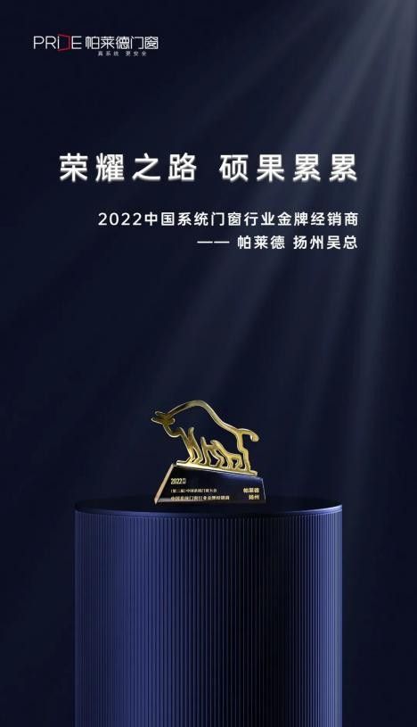 帕萊德門窗揚州經銷商榮獲“2022年度中國系統門窗行業金牌經銷商”稱號。