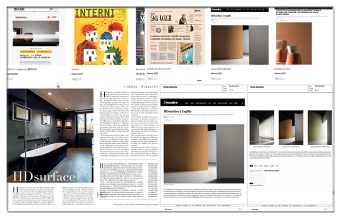 《INTERNI》報道節選:新的Argille系列以塵土飛揚的觸覺美覆蓋墻壁,由于其紋理變化,將光線轉化為微妙的反射閃光,能夠表達最多樣化的想象和給予您自己的創作自由的空間——INTERNI是歐洲首屈一指的專業室內設計雜志。