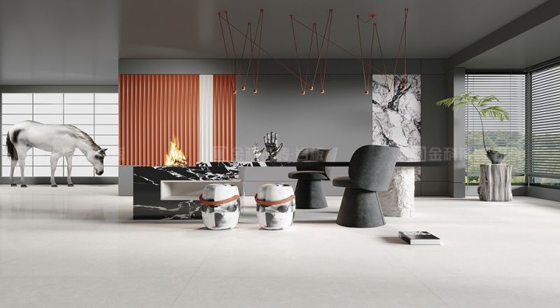 磚面色調(diào)柔和,紋理縹緲且充滿質(zhì)感,宛如一幅平和的自然畫卷流淌于空間之中,整個(gè)空間溫婉時(shí)尚,細(xì)膩的觸感更提升了空間的高級(jí)感。