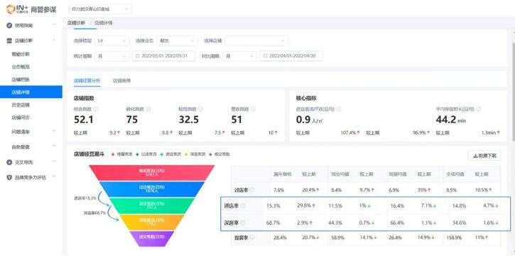 過去,購物中心運營人員憑借經驗,結合銷售數據、會員數據及客流人次等判斷商戶大致經營情況,發現銷售問題卻難以判斷原因,商場幫扶無法“對癥下藥”。基于精細化深度運營的理念,印嘉科技與 Aibee 愛筆智能共創出能夠精準賦能商戶的智能助手——“商管參謀-羅盤”(TA,Tenant Advisor),基于顧客全流程數字化的精準客流,融合商圈、品牌、交易、租售等大數據形成全面、標準、規范、科學的店鋪評價體系,可多維度下鉆分析店鋪經營情況,自動預警問題店鋪,一鍵歸因找到問題癥結,充分提高業務人員效率,降低業務門檻。