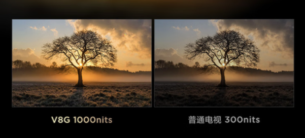 TCL V8G全系標(biāo)配百級背光分區(qū),最高擁有1000nits的峰值亮度表現(xiàn),要知道這可是建立在50英寸電視僅有2199元到手價(jià)基礎(chǔ)上的,同尺寸、同價(jià)位,如此誠意滿滿的配置僅以一家。在電視圈有個(gè)所謂的“黑話”叫做一亮遮百丑,也形象地展示了電視亮度表現(xiàn)對于畫質(zhì)的幫助。畢竟更亮的屏幕就能有效展現(xiàn)出畫面中的高光區(qū)域,像是日出、夜晚的車燈等等,都更具真實(shí)感,不會(huì)出現(xiàn)所謂的屏幕發(fā)白等問題。