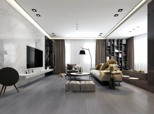 紅利名典木系列HL-FG-21,以優(yōu)質櫟木為原材,保留了櫟木通直舒展的紋理,并通過漆面處理工藝,讓地板在色值上既達到高級灰的視覺效果,又得以透出木韻質感,在冷色系中加入木質的溫暖與優(yōu)雅。
