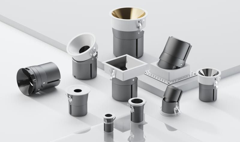 三峰照明銳志II系列射燈為了更好地適應(yīng)不同的安裝要求,提供了Φ25mm、Φ35mm、Φ45mm、Φ55mm、Φ75mm、Φ95mm六種開(kāi)孔尺寸。摒棄了高度的束縛,其中有專門的矮燈體防眩燈具, 開(kāi)孔Φ55mm高度50mm、開(kāi)孔Φ75mm高度60mm。Φ35mm、Φ45mm、Φ55mm搭配開(kāi)孔小圓孔射燈,延續(xù)添智系列天圓地方設(shè)計(jì)理念,采用內(nèi)凹弧面設(shè)計(jì),線條簡(jiǎn)約美觀。