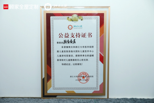此次顧家家居對于醫院游戲室的公益支持打造以及公益關愛行動,獲得了醫院的認可,也受到小朋友們及家長的歡迎,并榮獲浙江大學醫學院附屬兒童醫院頒發的感謝證書。