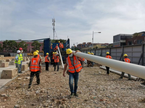 吹響沖鋒號(hào)角!吊車林立、機(jī)械轟鳴、指揮調(diào)度聲不絕于耳……11月21日早7點(diǎn),項(xiàng)目團(tuán)隊(duì)正式進(jìn)場(chǎng)施工,“以快制快,爭(zhēng)分奪秒抓進(jìn)度,全力以赴戰(zhàn)疫情”全體人員抱著一個(gè)信念,火速進(jìn)入“戰(zhàn)斗”狀態(tài)。為應(yīng)對(duì)即將到來的雨季,項(xiàng)目部提前采購足夠雨衣雨鞋并設(shè)置兩間板房,做好雨中施工的準(zhǔn)備。同時(shí)項(xiàng)目管理人員及工人掛圖作戰(zhàn),日夜鏖戰(zhàn),確保11月21日晚前完成室外排水管道東側(cè)和南側(cè)道路預(yù)埋工作。