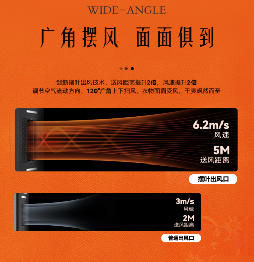傳統晾曬衣服離不開陽光、溫度,一方面可以有效的殺菌,另一方面可以快速的曬干。但是這款好太太GW-160智能晾衣機因為開創性的研發出了擺葉出風技術,送風和風速均提升于市場上常見的晾衣機2倍之多,隨意調節空氣吹動方向,角度擴至120°廣角,使得晾曬衣物雙面均可受到風吹,快速干爽,無懼天氣影響。
