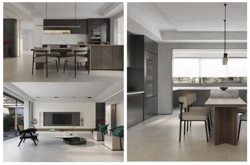 餐廳丨地面:竹韻淺灰 墻面:冠珠巖板 卡拉卡塔