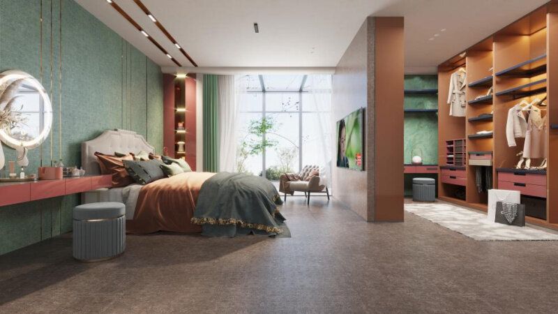 迪麗熱巴喜歡的新中式風(fēng)   臥室丨墻面:錦繡柏綠  地面:錦繡煙棕