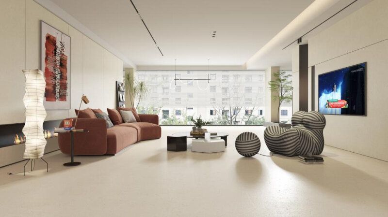 客廳丨地面:竹韻淺灰 墻面:箋紙米黃