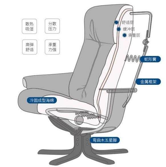 IMG Comfort挪威躺的內部結構也別出心裁,選用了航空級的冷固定型海綿,并有承重層、緩沖層、舒適層三層設計,靈活耐用的鋼制內框一次壓制成型,巧用人體工程學原理讓人久坐不累,也為脊柱亞健康人士提供良好的保健作用。