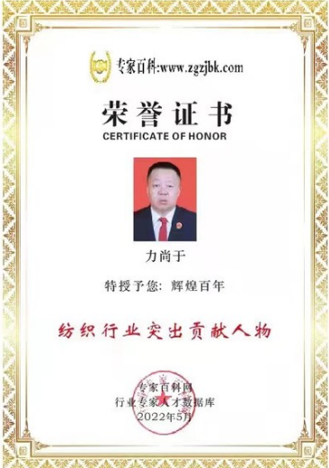 力尚于,紹興皮爾波瀾紡織品有限公司董事長。中國誠信優秀企業家、中國管理科學研究院高級研究員、全球民族品牌推廣大使。來自江南水鄉特色的文化和生態旅游城市,亞洲最大紡織基地“國際紡織之都”—中國-浙江-紹興,山西商人《晉商文化》自幼繼承革命老區人民艱苦奮斗,堅忍不拔敢于創新的奮斗精神。從莘莘學子到奮斗創業、從公司高管到獨立創辦企業,始終深耕專注在紡織品行業創新領域三十幾年。憑借多年行業經驗和敏銳的視角,積極響應國家戰略和國務院關于推進紡織業有序健康發展的指導意見,引入國際先進的創新技術經驗,將新興業態紡織業創新服務進行全方位的結合線上線下展示廳。