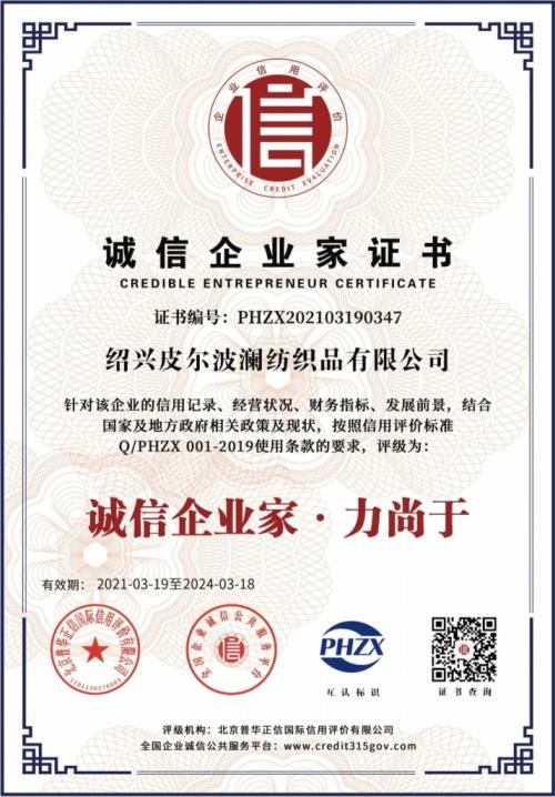 紹興皮爾波瀾紡織品有限公司董事長—力尚于