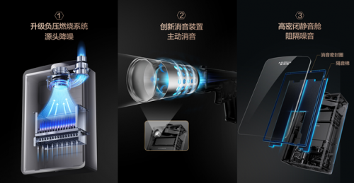 不同于空調、冰箱等噪音源單一的電器,燃氣熱水器的噪音由風機、燃燒、水泵等多方面產生,牽一發而動全身,需要研發出系統的解決方案。而A.O.史密斯的工程師的靈感來源于手槍消音器的工作原理,由此發明了適用于燃氣熱水器的消音裝置專利**。再結合三維立體降噪系統,最終突破該技術難關。