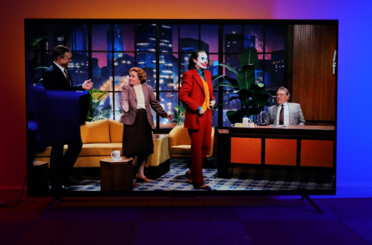 這方面表現比較好的我推薦TCL T7G,百級分區背光加上1000nits的超高峰值亮度與96% DCI-P3電影級高色域,能夠帶來相當出色的畫面表現,下圖為色彩豐富的《joker》,可以看出來TCL T7G準確還原了出小丑嘴角、外套妖艷的紅色,鮮艷的綠色頭發,以及明亮的橙色馬甲,沒有過度鮮艷也沒有太暗淡,在保證明暗對比清晰的同時,完美還原了各種色彩。