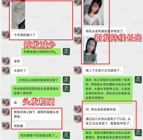 最初金女士脫發(fā)嚴(yán)重,頭頂也幾乎要禿頂?shù)墓?jié)奏了,后來知道羅氏育發(fā)后,剛開始也害怕上當(dāng)受騙,但她還是選擇試一次。在羅氏育發(fā)指導(dǎo)調(diào)理后,她的脫發(fā)逐漸減少,新發(fā)逐步長(zhǎng)出,并且越來越密,而且頭發(fā)粗硬、烏黑,有光澤。
