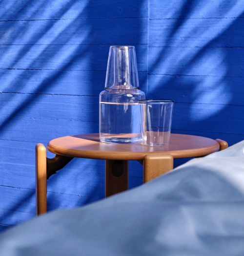 Rim Carafe有一個細長的漏斗狀頸部,頂部是鑲邊設計,它是一個集裝飾和功能于一體的器皿。這款優雅的玻璃瓶既可以單獨使用,也可以和配套的Rim Glass杯子一起使用。杯子被巧妙設計成可扣置于水瓶上的造型,便于手拿飲料從一個房間走到另一個房間。