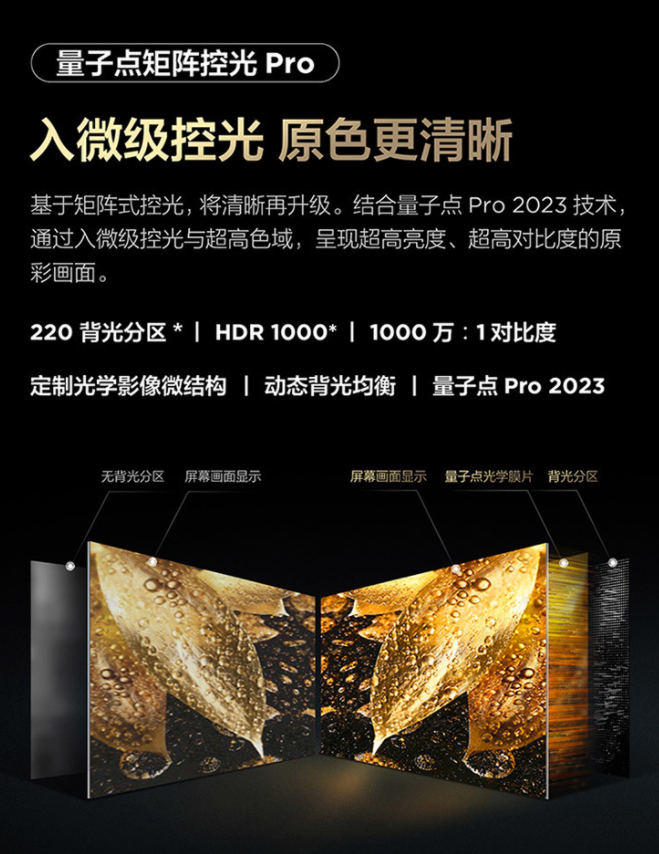 在之后時間里,電視行業推出了一系列的顯示技術,但基本都是基于LED之上,而TCL在2023年年初發售的TCL C11G運用了大量全新的顯示技術,堪稱LED的再次進化,這就是量子點矩陣控光Pro技術。