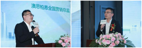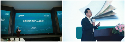 千年舟集團(tuán)商學(xué)堂高級講師張文學(xué)、千年舟集團(tuán)澳思柏恩全國市場經(jīng)理李廣安分別對澳思柏恩品牌、產(chǎn)品體系特征與定位作出重點(diǎn)說明。澳思柏恩是千年舟集團(tuán)旗下四大品牌之一,同時也是千年舟集團(tuán)素板的代表品牌。